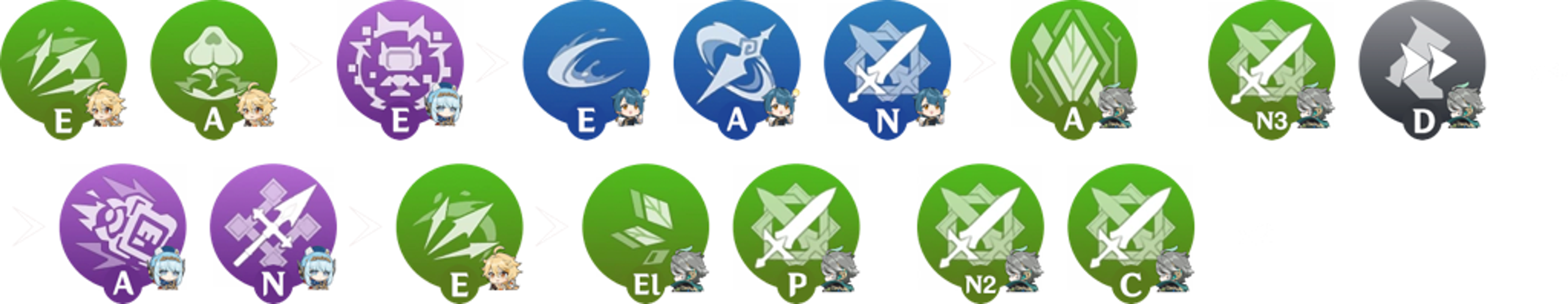 En termes de soutien, tous les personnages élémentaires pouvant bénéficier à la synergie de l’équipe sont envisageables, à condition qu’ils n’altèrent pas la performance de l’archétype. Priorité doit être donnée aux personnages capables d’accroître directement les dégâts du maître d’œuvre, notamment en boostant la maîtrise élémentaire ou la puissance de déclenchement.
