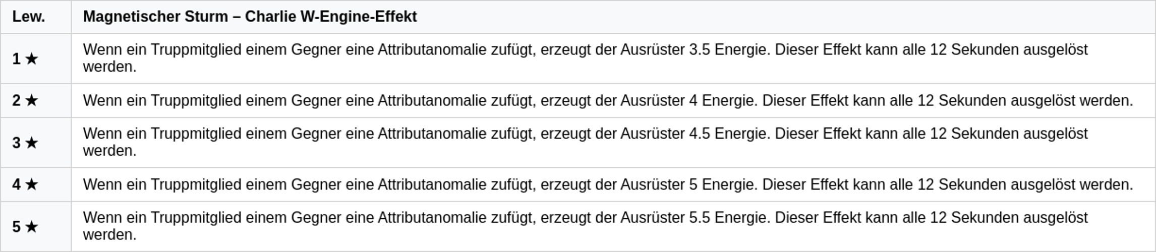 Verursacht ein Teammitglied beim Gegner eine Attribut-Anomalie, bekommt der Ausrüstende 3,5 Energie gutgeschrieben.